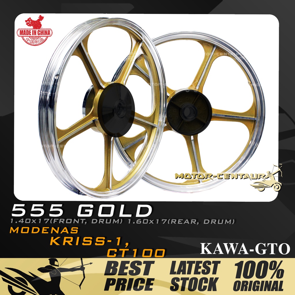 Rim Motosikal Kawa Gto Sport Rims 555 1 40x17 Drum F 1 60x17 Drum R For Modenas Kriss 1 Mr1 Ct100 Gold Shopee Malaysia
